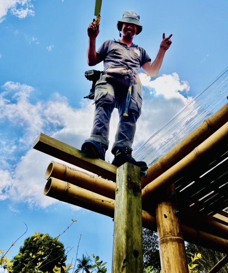 • En 2018, Thibaut FUNG, jeune architecte réunionnais visionnaire, propose dans son projet de fin d’études une première vision globale de la filière bambou sur l’île. Depuis, devenu architecte et artisan “Bambooman”, il coopère régulièrement avec les acteurs engagés et participe activement à la structuration du secteur, y compris à l’export (Île Maurice et Mayotte). Il a conçu et construit de ses propres mains de nombreux ouvrages remarquables en structure bambou avec nombre d’acteurs.